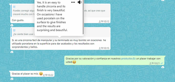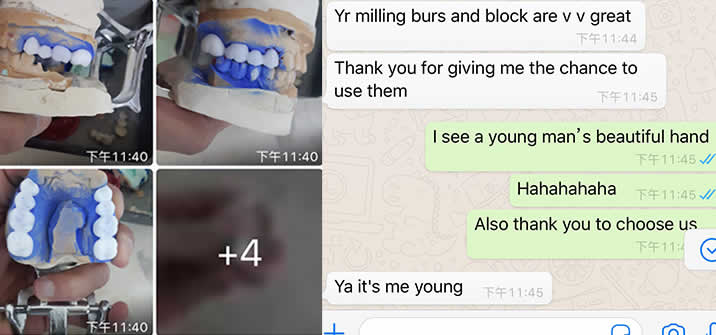 All our sales contact are well trained to dental product and its techncial knowledges, and can free talk in English, our GM Mr. Deng who worked in very famous Germany dental lab as GM before, we can use wechat, whatsapp, phone call, email or any other way anytime anywhere to talk, let’s talk.